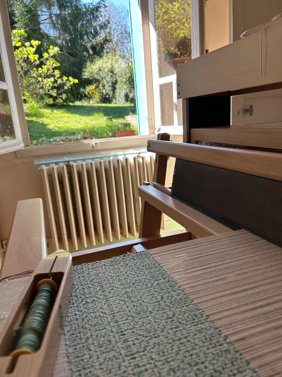 Dans l'atelier, votre projet prend forme au métier à tisser. Le temps de création varie selon la complexité de votre demande. Chaque geste est pensé pour donner vie à votre vision.